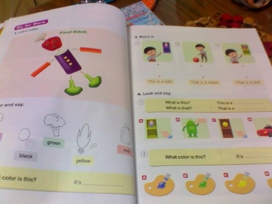 재생용지를 써서 그런지 책이 무지 가벼워요. 그래서 아이와 잠자리에 누워서 책을 읽어주기에도 딱 좋아요. 아직은 제가 읽어주고 해석을 해 주는 수준인데 아이가 자꾸 반복되는 단어가 나오니 이제는 제가 읽어주면 단어의 뜻을 조금씩 알고 대략적으로 문장 내용을 알아 맞히더라구요. 영어는 반복이 참 중요한 것 같아요. 단어 수준이 그렇게 높지는 않는 데 중간 중간에 저도 모르는 단어가 섞여 있기는 하더라구요.ㅋㅋㅋ