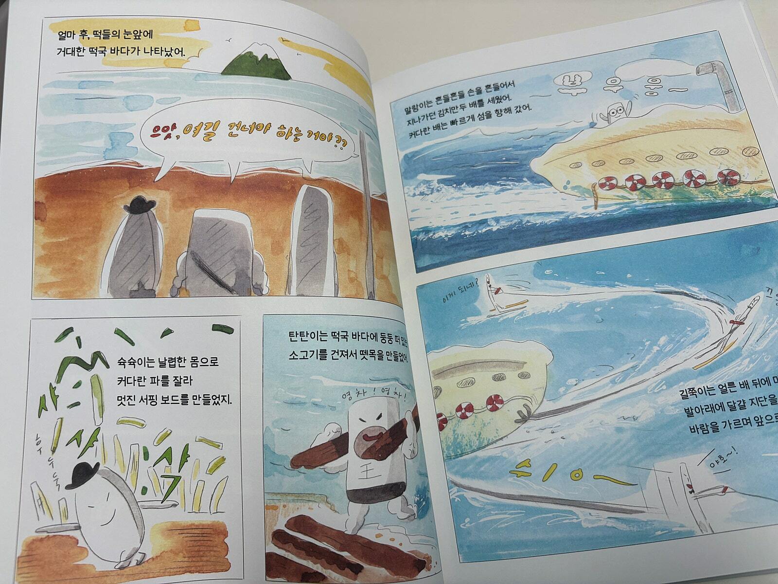 이야기는 여러 가래떡들이 모여 “내가 제일 최고야!”라고 서로 우기면서 시작돼요.