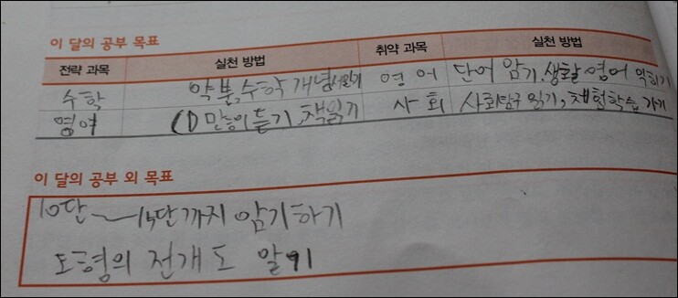 지원인 현재 스스로 공부하는 것과 엄마가 시켜서 하는 것이 섞여있구요,