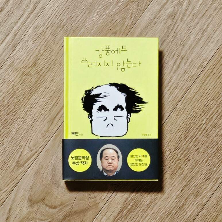 '강풍에도 쓰러지지 않는다' 라는 제목과 달리 뭔가 귀여운 캐릭터가 표지에서 보여졌다. 그런데, 띠지까지 보고 나니, 이건 단순한 캐릭터가 아니라는 것을 알수 있었다. 그리고 이 도서의 저자가 노벨문학상 수상 작가라는 점에서 도서가 궁금해졌다. 도서의 띠지에는 '불안한 시대를 버티는 단단한 문장들'이라고 적혀 있었다. 그리고, 책을 살피는데, 도서에 관련하여 '노벨문학상 수상 작가 모옌, 그의 삶을 관통하는 단 하나의 질문'이라는 문구를 볼 수 있었다. 그 질문은 바로, "어떻게 쓰러지지 않고 버틸 것인가"였다.