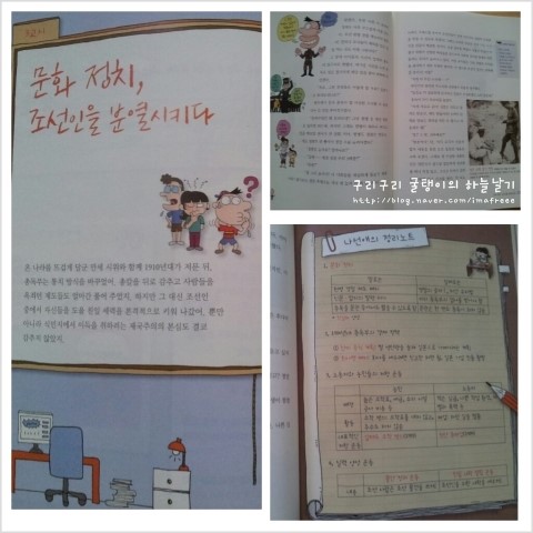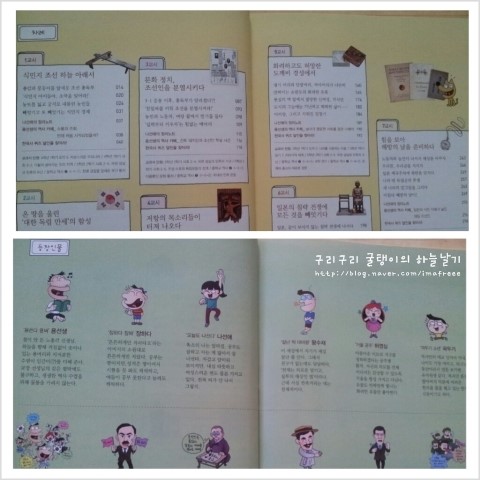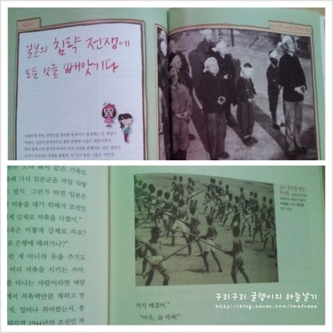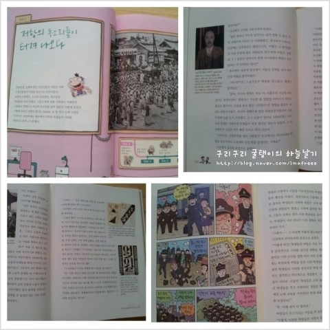 시대배경의 사진들이 많이 첨부되어 있고 만화그림이 간혹 섞여 있으면서 내용설명을 하고있어