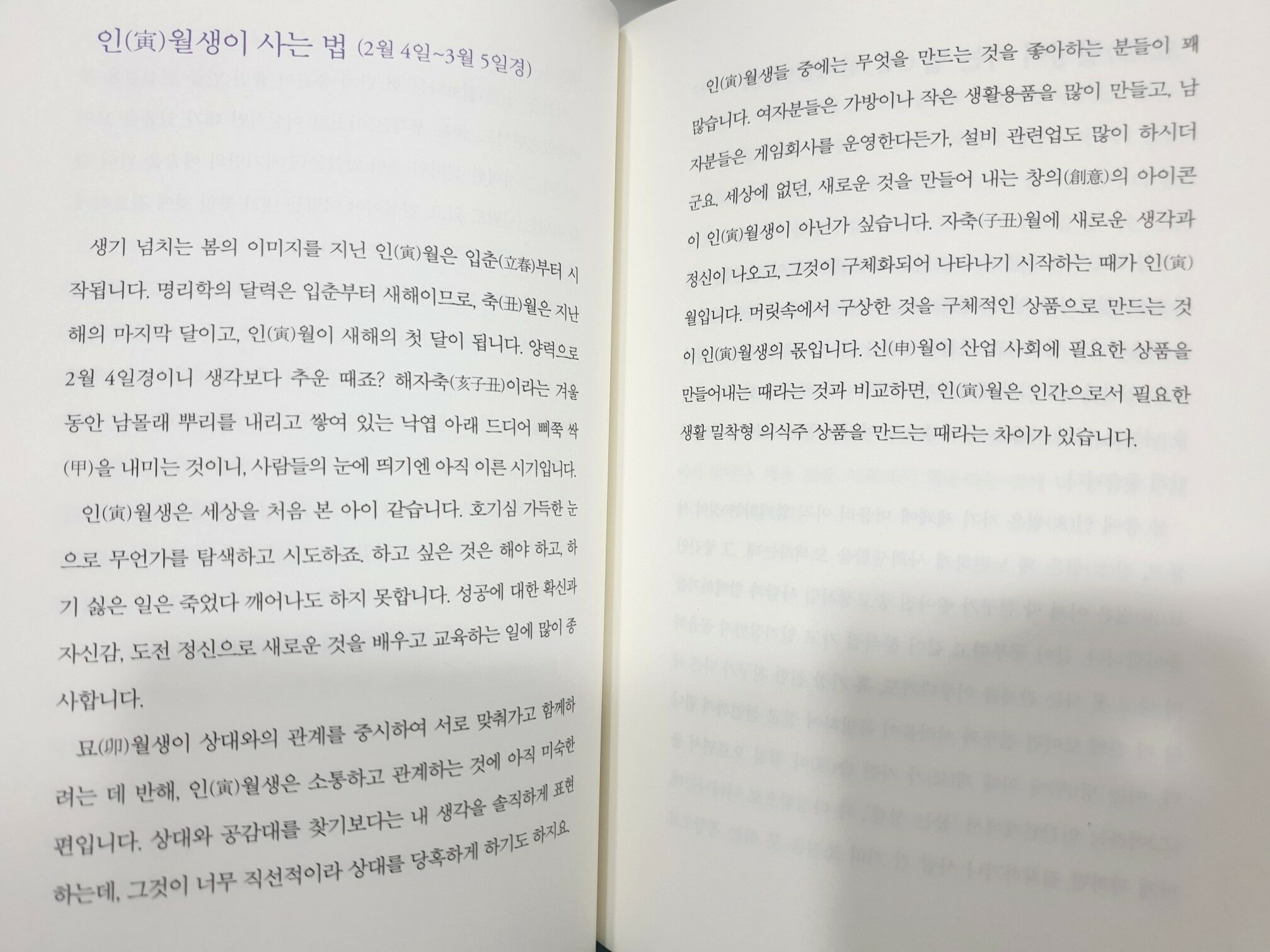 태어난 월별로 특징을 설명해둔 부분이 따로 있어서 이부분을 참고해도 좋을것 같습니다.