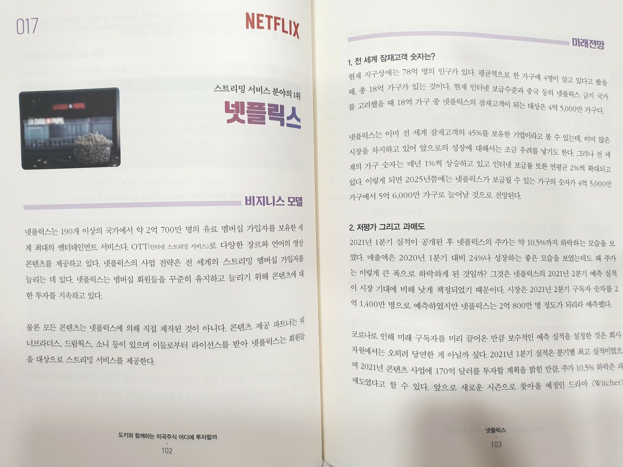 투자이론서에 없는 실제 미국 기업정보 도키와 함께하는 미국주식 어디에 투자할까 이 책에는 미국주식 베스트 70개 기업의 미래전망 분석이 나와있습니다. 미국주식의 특성상 영어로된 정보가 많아서 찾거나 알기 어려울 때가 있는데 70여 기업의 장단점을 정리해두어 편리하게 볼수있습니다. 기업별 비지니스모델부터 미래전망, 리스크, 펀더멘달까지 투자하기 위해서 알아야할 기업의 모든 정보가 보기 좋게 정리되어 있습니다. 주식에 투자하기 위해서 종목을 어떻게 분석하고 기업을 어떻게 분석해야하는지 엿볼 수 있습니다. 미국기업의 정보를 확인하는 주요사이트도 나와있습니다. SEC 사업리포트 검색 SEC.gov 미국의 대표 기업들인 테슬라, 구글, 애플, 아마존 등부터 분야별 대표기업들인 보잉, 마이크론, 로블록스 등 기업들에 대해 나와있습니다. 이런 기업들에 알고있지만 정확하게 알고있지는 못했던 기업의 자세한 정보를 쉬운글을 통해 알 수 있습니다. 많은 사람들이 흔히 알고 익숙한 기업이라고 하더라도 정확한 팩트들을 파악해야합니다. 보통 주식투자를 할 때 너무 많은 기업에 투자하는 것은 리스크대비 좋지 않습니다. 그럼에도 많은 수의 기업에 대해 공부가 되어있어야 합니다. 그래야 주가가 싸질때 매수하고, 다른 주식을 매도 후에 또 다른 기업에 바로 투자할 수 있습니다. 이 책을 통해 70개의 기업에 대해 모두 보기보다는 자신이 관심있는 기업들 위주로만 봐도 좋을 것 같습니다. 그리고 이 책을 통해서 새로운 기업들을 알아가는 것도 좋을 것 같습니다. #도키와함께하는미국주식어디에투자할까 #주식 #미국주식 출판서로부터 도서를 무료로 제공받아 주관적으로 작성한 리뷰입니다