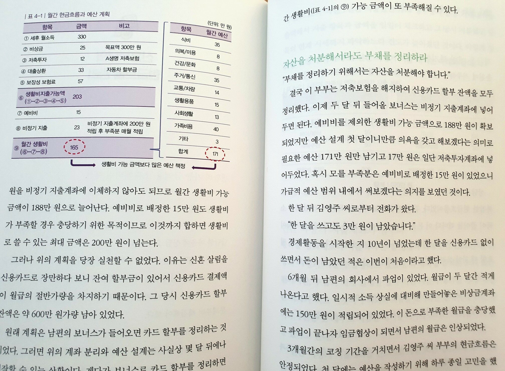자산관리 마스터가 알려주는 돈공부 어른들을 위한 돈과외 재무설계사무소의 소장인 이 책의 저자 안성민은 지인이 갑자기 사망하면서 보험의 중요성을 깨닫고 보험과 재무설계관련 일을 하기 시작했습니다. 우리는 경제적자유를 이루기 위한 거창한 목표나 자산증식을 위해 돈공부를 해야하는 것이 아니라 이번달에 번 돈으로 다음달에 편안히 생활하기 위해 돈공부를 해야합니다. 이를 위해선 현금흐름 관리가 필수입니다. 직장인들은 보통 12일 이내 텅장이 된다고 합니다. 제가 직장인이었을 때도 회사에 입사하자마자 회사에서 신용카드를 만들어주었고 대부분의 지출은 신용카드로 했습니다. 그러다보니 월급이 들어오는 25일에 맞춰서 카드값이 빠져나가고 각종 보험이나 적금 등이 빠져나갔습니다. 그러다보니 돈이 하루만에 다 빠져나갔습니다. 직장인의 장점은 매달 안정적으로 월급이 들어온다는 것입니다. 이러한 안정감때문에 오히려 신용카드를 사용해서 다음달의 월급에서 돈을 빼 쓰게 됩니다. 이 흐름을 끊고 수입과 지출의 현금흐름을 관리해야합니다. 요즘 엔잡러가 유행이지만 소득을 늘리는 것은 힘들고 또한 지출을 줄이는 것도 힘든일입니다. 그런데 현금흐름만 잘 관리하면 신용카드의 악순환에서 벗어날수 있습니다. 한달의 소비를 수입에 맞추거나, 지출에 맞춰 돈을 벌면 됩니다. 돈을 버는 지금뿐만 아니라 은퇴후의 나를 위해서도 지출만큼 수입이 발생하도록 준비해야 합니다. 우선 수입계좌와 지출계좌를 분리하고 모든 지출은 지출계좌에서 사용합니다. 수입계좌 1개이며 지출계좌는 총 4개인데 저축투자계좌, 생활비계좌, 예비비계좌, 비정기지출계좌입니다. 생활비에는 고정지출과 용돈이 포함되고 예비비는 생활비의 3~6개월 정도의 돈, 비정기지출은 연간 비정기적으로 나가는 지출이 (명절비용, 휴가비용, 이벤트 비용 등) 포함됩니다. 신혼부부나 상담자들의 실제 사례가 들어있습니다. 이 책 자체가 평소에 자산관리를 하지 않던 사람들을 대상으로 시행착오를 반복하며 자산관리를 완성해가는 과정이라서 누구라도 책을보면서 자산관리를 시작할 수 있습니다. 결국 돈관리는 평생 해야하는 것입니다. 이를 위한 계좌관리와 예산설계를 이 책에서 배우고 따라해보면 좋을 것 같습니다. #어른들을위한돈과외 #자산관리 #돈관리 출판서로부터 도서를 무료로 제공받아 주관적으로 작성한 리뷰입니다