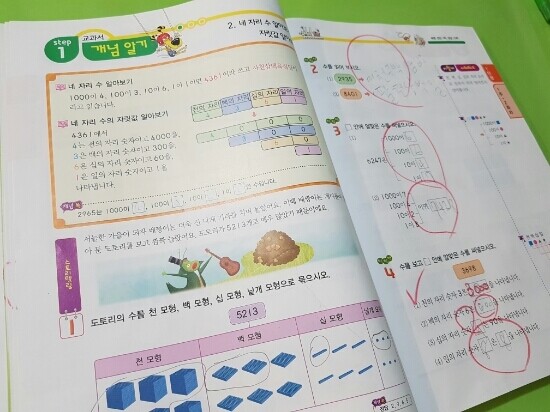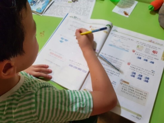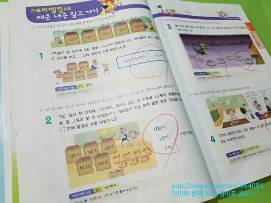 아들이랑 직접 2단원을 풀고있는 모습인데요.