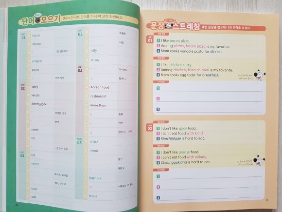 영어식으로 해석이 되어 있어 어렵지 않게 배운 글을 다시 떠올리며 써 볼 수 있답니다.