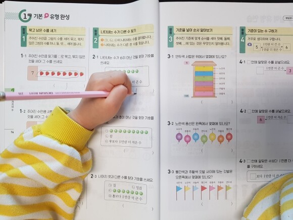 올해 입학하는 초등 1학년! 수학을 꾸준히 공부하다보니 응용 심화편까지 다뤄보게 되었어요.