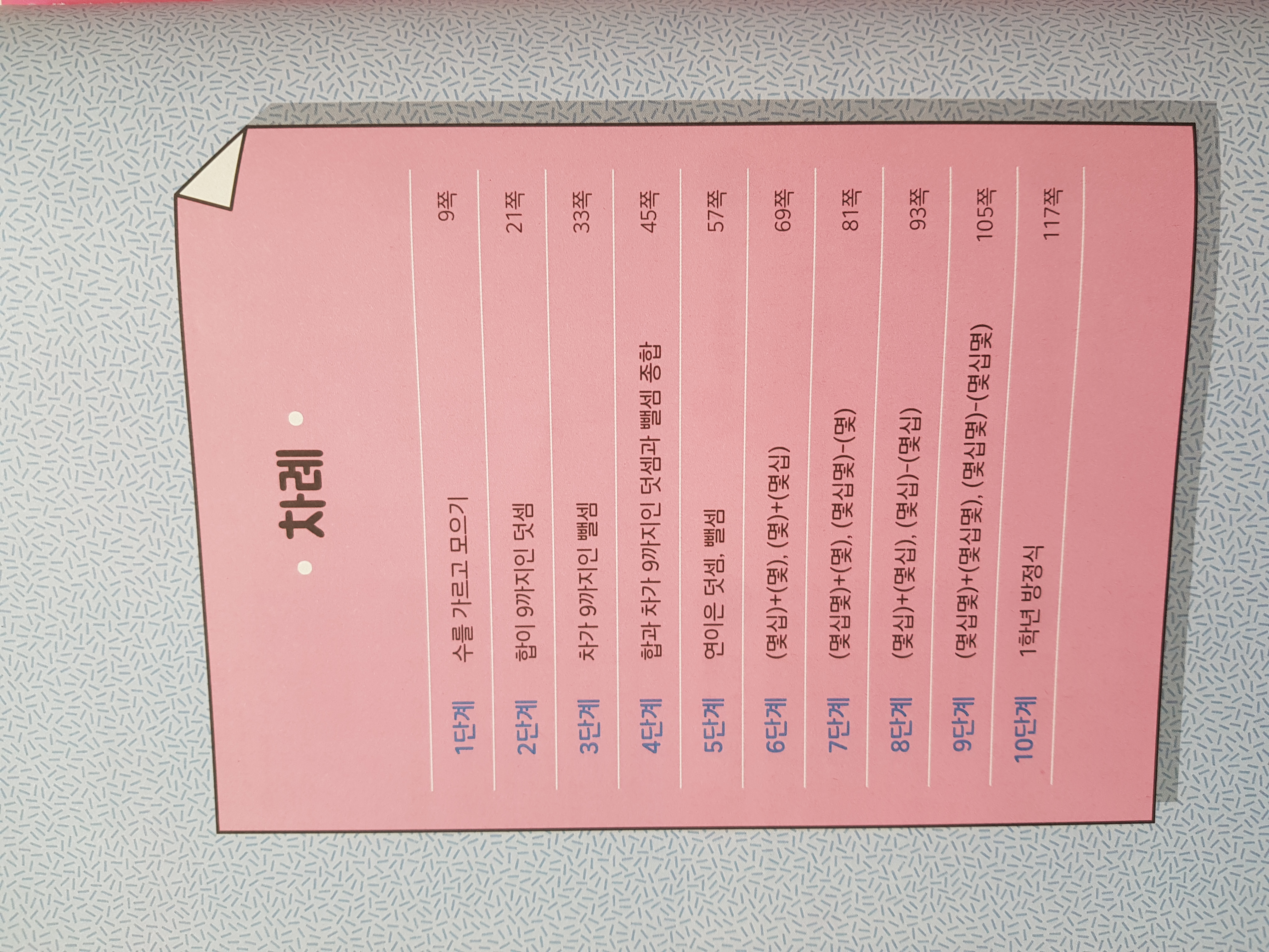 초등1학년 아이의 연산 실력을 쌓아가기 위해 길벗스쿨의 기적의 계산법으로 공부하려 합니다~기적의 계산법의 특징 중 하나는 한 장씩 뜯어서 연산 학습지로 구성할 수 있다는 것이랍니다.절취선이 있어 깔끔하게 분리된답니다.1학년의 1권의 학습은 총 10단계로 공부할 수 있도록 되어 있는데요~각 단계별로 5일의 학습 구성입니다.하루 1장씩 공부하게 된다면 10주 완성이겠네요~하루 1장의 학습 구성은 앞면과 뒷면의 유형이 다르게 되어 있어 자칫 지루할 수 있는 연산을 재미있게 풀어볼 수 있어요.5일간의 반복 학습으로 연산 실력과 속도는 높이고 실수는 낮추기!!!마지막 단계는 응용 연산을 맛보기 할 수 있는 1학년 방정식을 풀어보는 것으로 마무리~~~완북하는 날 아이의 실력이 많이 향상되어졌을 것을 생각하니 벌써부터 뿌듯해집니다 ㅎㅎㅎ기적의 계산법은 예비 초등 5권, 초등1학년 ~ 6학년까지 각 2권씩 총17권으로 구성되어 있어요.저희 아이는 아침 등교하기 전에 한 장씩 풀어보기로 계획했어요.하루 한 장 학습으로 구성되어 있기는 하지만 아이의 역량에 따라 활용하기 나름입니다.책으로 들이미는 것을 부담스러워한다면 한 장씩 뜯어서 주는 것도 좋을 것 같아요~엄마표 연산 학습으로 기적의 계산법을 차근차근 풀어보게 한다면 기본기부터 탄탄하게 다져갈 수 있을 것으로 생각됩니다~[출판사로부터 무상으로 교재를 제공받아 작성한 후기입니다]