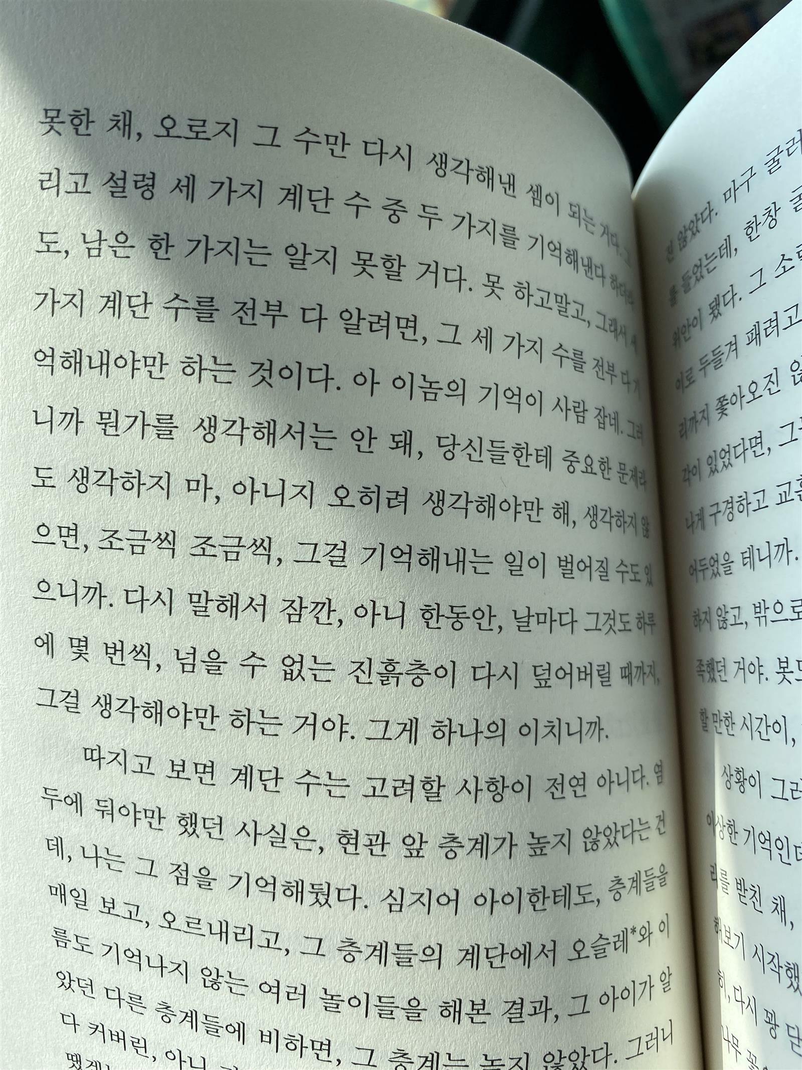 더불어 제목은 “등대로”이지만 등대행은 마지막에서야 이루어지고, 그다지 큰 비중을 차지하지 못한다는 생각에 제목의 의미를 고민해 보게 되었다. 등대는 1부에서부터 가야 할 곳, 언젠가는 향할 곳으로 정해져 있으나 마지막 챕터에서 결국 추려진 인원끼리 도착한 곳이다. 사실 등대행에 대부분이 큰 관심을 두지 않으나, 취미가 비슷하고 함께 있을 때 편한 제임스와 램지 부인만은 당도하고 싶다는 욕구를 내비친다. 특히 램지 부인이 불빛에 홀린 듯 바라보는 대목은 『위대한 개츠비』의 초록색 불빛이 연상될 정도였다. 주시할 만한 점은 부인이 넋을 놓고 불빛에 빠져 있다가도 남편의 기척을 알아차리고 바라보는 일을 관두고 현실로 돌아와 그에게 말을 걸었다는 점이다. 정황을 종합해 볼 때 등대는 “내일은 갈 수 있을 거야”라는 기대를 품고 내일을 기다리게 하는 용기이기도, 그러나 가장 바랐던 부인은 끝내 닿을 수 없었던 먼 염원이기도, 멀리에서 봤을 때에는 멋져 보였지만 가까이에서 보니 다소 초라한 꼴의 삶인 것도 같다고 생각했다.