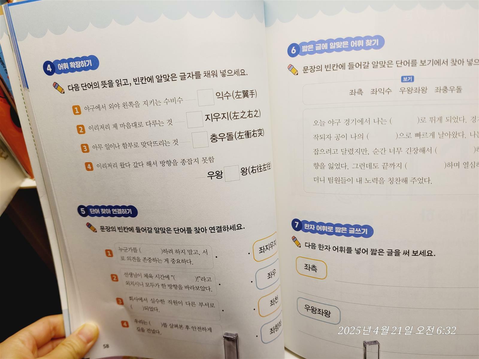 복잡하거나 설명이 많이 필요한 교재는 아무래도 매일 꾸준히 학습하기 어려운데 이 책은 한 페이지당 분량도 적절하고, 설명도 간결하고 단어를 그냥 외우는 게 아니라, 의미와 맥락을 함께 익히니 아이의 기억에도 오래 남아서 좋은 것 같습니다.