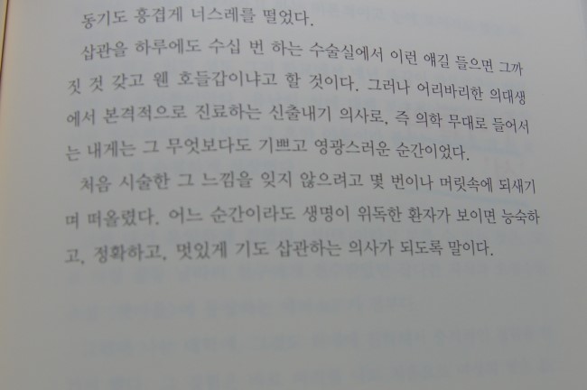 책을 읽어가면서 의대 실습생 시선으로 바라본 환자와 병원, 그리고 그 안에서 벌어지는 이 이야기는 한 편의 드라마같다는 느낌이 들었다. 삭막하고 건조하고 지루하며 재미없을 것만 같았던 의대생 삶을 희로애락이 담긴 한 편의 드라마를 보는 것 같아 즐거웠다.