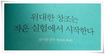 8가지 공통 요소가 존재함을 발견했다.  세상을 바꾼 1천 번의 작은 실험'이라는 부제에서 교훈을 얻었다고 할까. ‘디자인적 사고’에서 ‘창의성의 장벽’에 이르기까지 저자의 창의성과 관련된 흥미로운 연구 결과는 과감하게 자신을 둘러싼 고정관념 속에서 벗어나야 발상의 전환으로 이어지게 된다는 것을 바탕으로 리스크를 두려워하지 않고 도전할것을 강조하고 있다.  '시행착오'를 두려워하지 않고 오히려 당연스럽게 받아들여야 한다는 생각들은 앞으로 창의적인 사고를 하는데 많은 도움이 될 것 같다.