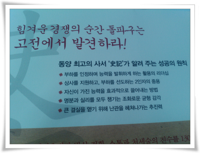 고전의 힘은 크다고 생각한다. 한 권의 위대한 고전이라고 불리는 저작에는 '무엇인가'가 걸려 있다고 한다. 또 반대로 그 저작에 '무엇인가'가 걸려있음으로써 오랜 시대의 파도에 씻긴 후에도 그것이 위대한 고전으로 존속되는 것이리라. '사기'도 결코 그 예외는 아니다. 아니 '사기'만큼 절실하게 그 저자인 사마천의 '무엇인가'가 걸려 있는 저작은 거의 없다고 해도 과언은 아닐 것이다. 《사기》에 담긴 깊은 지혜와 통찰, 인간관계, 성공의 원칙, 경영전략과 인재경영의 비법은 시대를 막론하고 조직의 리더들에게 지대한 영향을 끼쳤으며, 21세기 CEO들에게 필독서로 여겨지는 책이다. 어떤 유형의 인간이든 모조리 등장하기 때문에 <사기>는 의미가 있다. 권력자가 읽으면 지배의 원리와 기술을 배우게 되고, 반역자가 읽으면 저항의 논리와 전술을 배우게 될 것이다. 특히 은둔자가 읽으면 인생의 숭고한 허무를 감지하게 된다. <<사기>>에 담긴 인간과 조직, 사회의 내면을 응시하는 시선은 2천여 년의 시공을 뛰어넘어 살아 숨 쉬는 교훈이 될 것이며 21세기를 살아가는 현대인의 생각을 뛰어넘어 깨우치게하는 바가 많은 책임에 틀림없다.