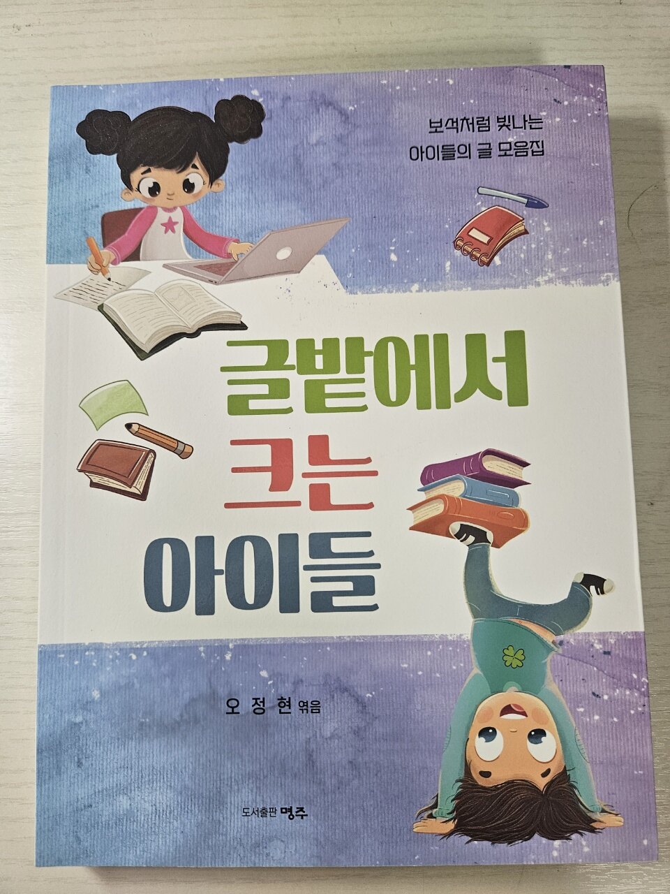 오늘 소개해 드릴 책은 보석처럼 빛나는 아이들의 글 모음집으로 『 글밭에서 크는 아이들 』입니다. 오정현 선생님은 오랫동안 아이들에게 책 읽기와 글쓰기를 가르치면서 아이들이 쓴 글을 읽거나 듣다가 눈물 지을 정도의 환희와 감동을 얻으셨다고 해요. 손끝에 펼쳐지는 마법을 보는 듯했다고 하셨어요. 아이들의 맞춤법, 띄어쓰기 등 제외하고는 교정작업을 하지 않으셨다고 해요. 원글을 보존하려고 하셨다고 적혀 있었어요. 저두 아이들의 글을 읽으면서 아이들의 시선으로 어떤 생각을 하고 있는지 살펴볼 수 있어서 좋았어요. 제가 어렸을 때는 독후감 주제글,상상글, 일기, 시 등 다양한 글들을 많이 썼는것 같은데 우리 아이들은 학교에서 그만큼 많은 글들을 쓰지 않은것 같아요. 6학년 아들과 4학년 딸아이는 일주일에 한번씩 주제글쓰기, 일기를 쓰고 있어요. 우리 아이들이 어떤 생각을 가지고 있는지 글쓰기를 통해 알 수 있지요. 아이들이 읽는 걸 싫어해서 아이들이 자거나 정리하면서 한번씩 쓴 글을 읽어보는데 아이들의 생각을 읽을 수 있었어요. 『 글밭에서 크는 아이들 』에서 87편의 글들이 있는데요.오정현 선생님의 첨삭이 크게 작용되지 않은 솔직담백한 글들을 살펴볼 수 있어서 좋았어요. 아이들은 이 책을 읽고 어떤 생각을 했는지 아이들의 눈으로 바로보는 이야기를 기록해 둔『 글밭에서 크는 아이들 』책인것 같아요. 우리 아이들도 『 글밭에서 크는 아이들 』을 읽고 자기만의 생각을 펼칠 수 있는 좋은 기회를 가지게 해주고 싶어요. 이번 겨울방학에 아이들과 함께 글쓰기를 해보려고 합니다. 엄마인 저두 함께 글쓰기에 도전!! 우리 아이에게 힘이 되어줄 수 있는 큰 교과서 같은 『 글밭에서 크는 아이들 』이에요. 너만의 생각을 마음껏 펼쳐보라고 해주고 싶어요.