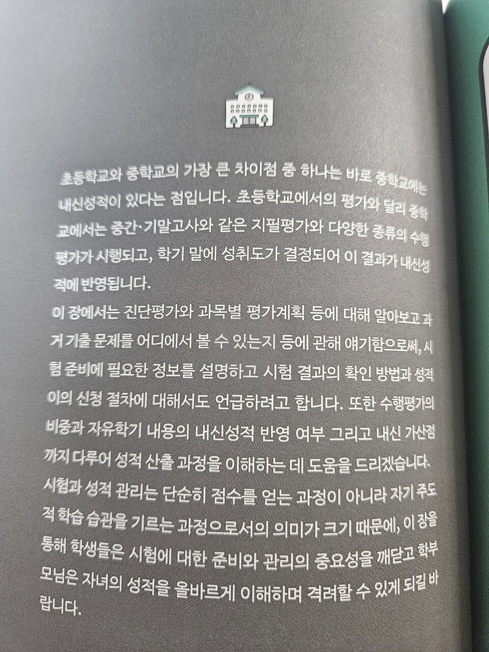 출결과 생활기록부가 왜 중요한지 정확히 파악할 수 있게 되어서 좋아요. 과목별 공부 방법을 통해 초등학교과 다른 전략으로 공부해야한다는 것을 파악할 수 있어요.