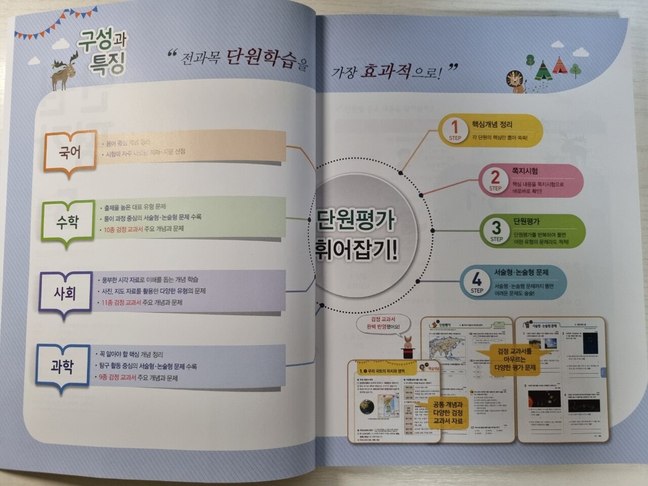 어려운 사회.과학과목을 미리 교과서 보며 훑어 볼 수 있어서 열공전과목단원평가로 확인 할 수 있어서 좋은것 같아요!!다른 과목 국어와 수학도 함께 평가문제집에 수록이 되어져 있어서 좋은것 같아요.