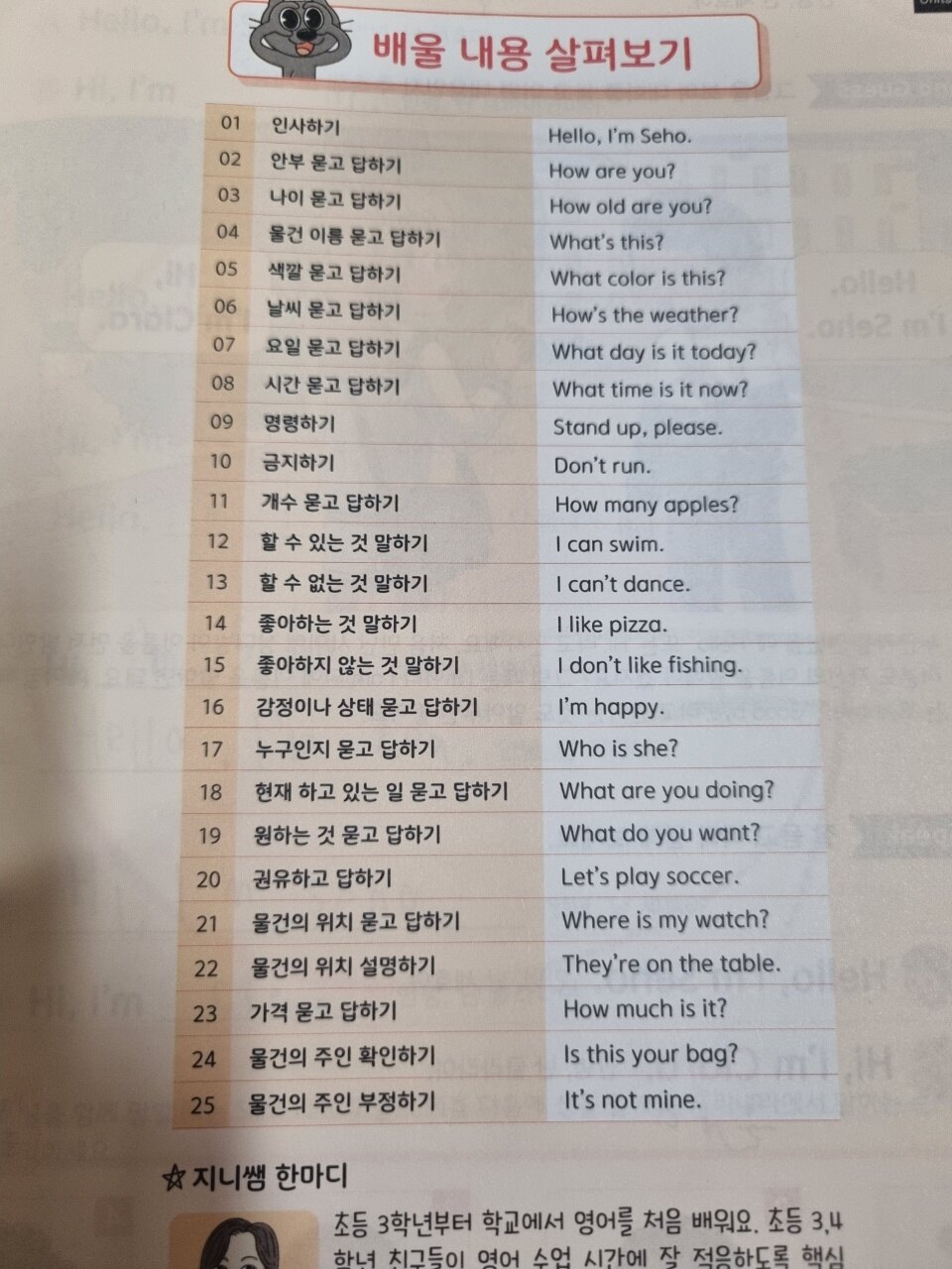 교육부 권장 초등 3학년부터 6학년까지 필수회화 표현 250개를