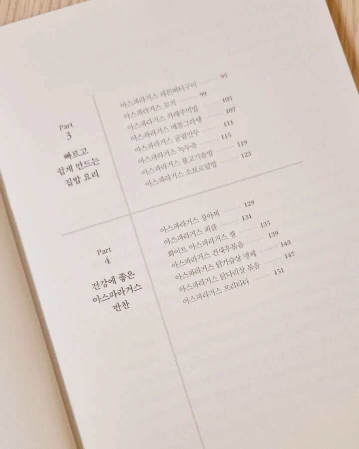 이 책을 통해서 아스파라거스 요리를  만들어 볼 수있어서 기대된다.