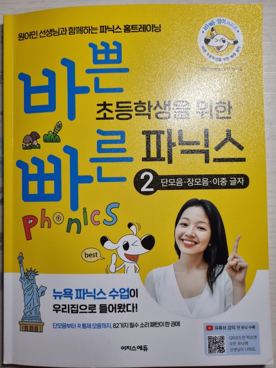 바쁜 초등학생을 위한 빠른 파닉스2 를 공부하는 여자아이에요 영어를 잘모르지만 별쌤 만나면서 재미있게 파니스 공부를 하고 있어요 1권에 이어서 2권도 별쌤의 영상을 보면서 공부하는 중이랍니다. 재미있게 설명까지 엄지척 👍 이여서 혼자서도 척척 잘한답니다. 아직 보면은 읽을수 있지는 않지만은 모음하나하나씩 체크하며 읽으며 영어 파닉스를 다져가고 있어요. 흥미와 재미를 주는 빠른 파닉스2교재 영상을 보며 혼자서도 재미있게 따라하고 읽고 문제도 푸는 자기주도학습도 되는 장점중에 장점이에요. 한국어린이에게 맞게 쉽게 학습할수 있게 설계되어져있는 파닉스교재 미국초등학교 선생님 강의까지 유투브로 가까이서 배울수 있어서 자기주도적학습으로 엄지척 👍 이에요. 82개의 필수소리패턴을 별쌤과 공부하며 하나씩 배워나간답니다. 파닉스공부하는 친구들에게 별쌤 추천드리고 싶어요.