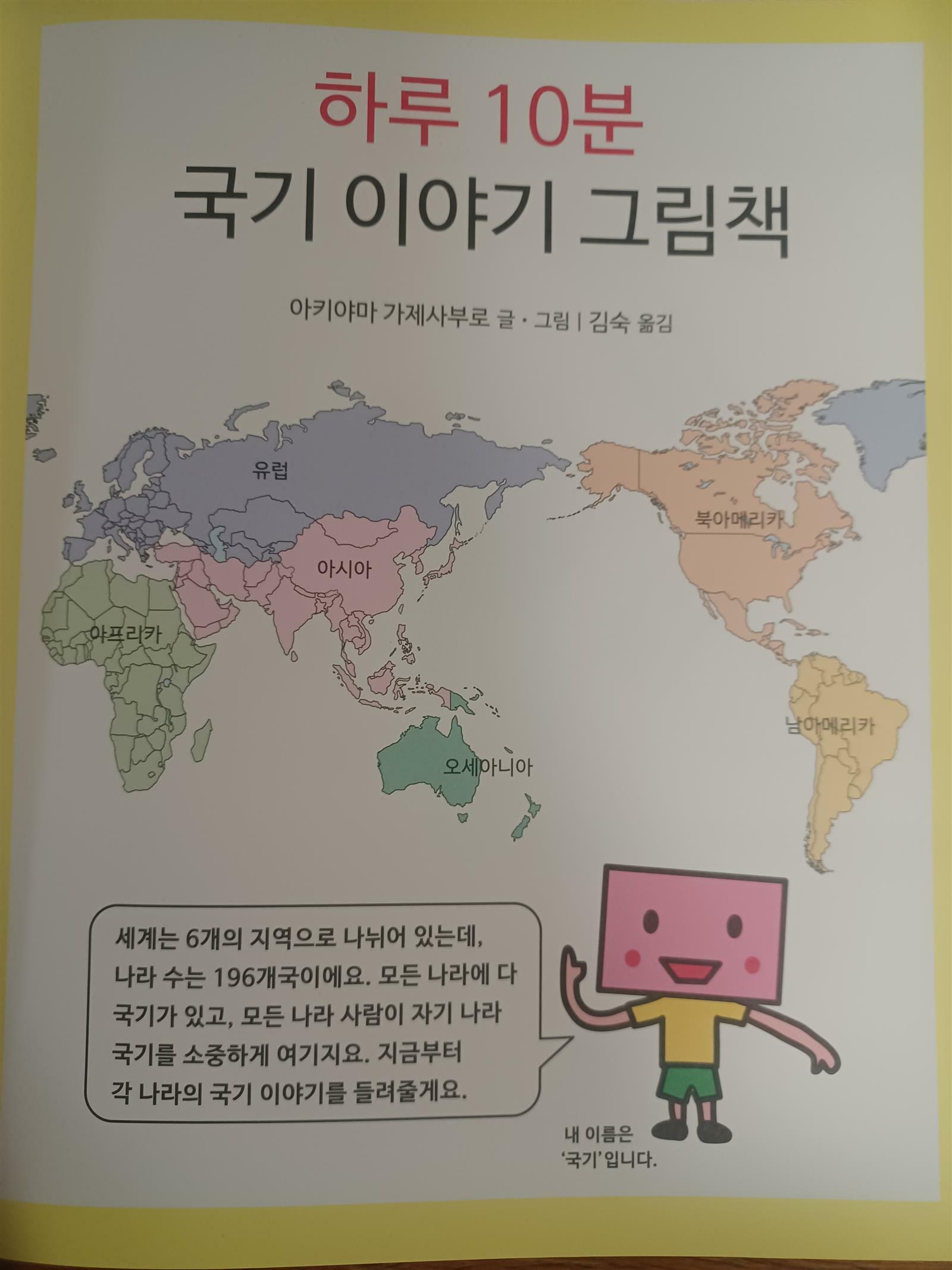 첫장을 넘기는데 제일 많이 봐온 우리나라 국기가 있었다. 나라이름,수도도 적혀져있다.