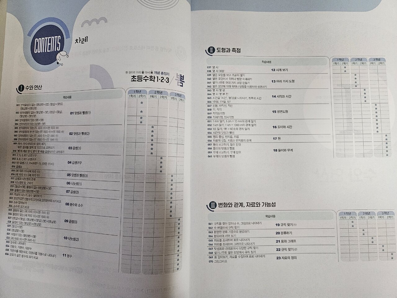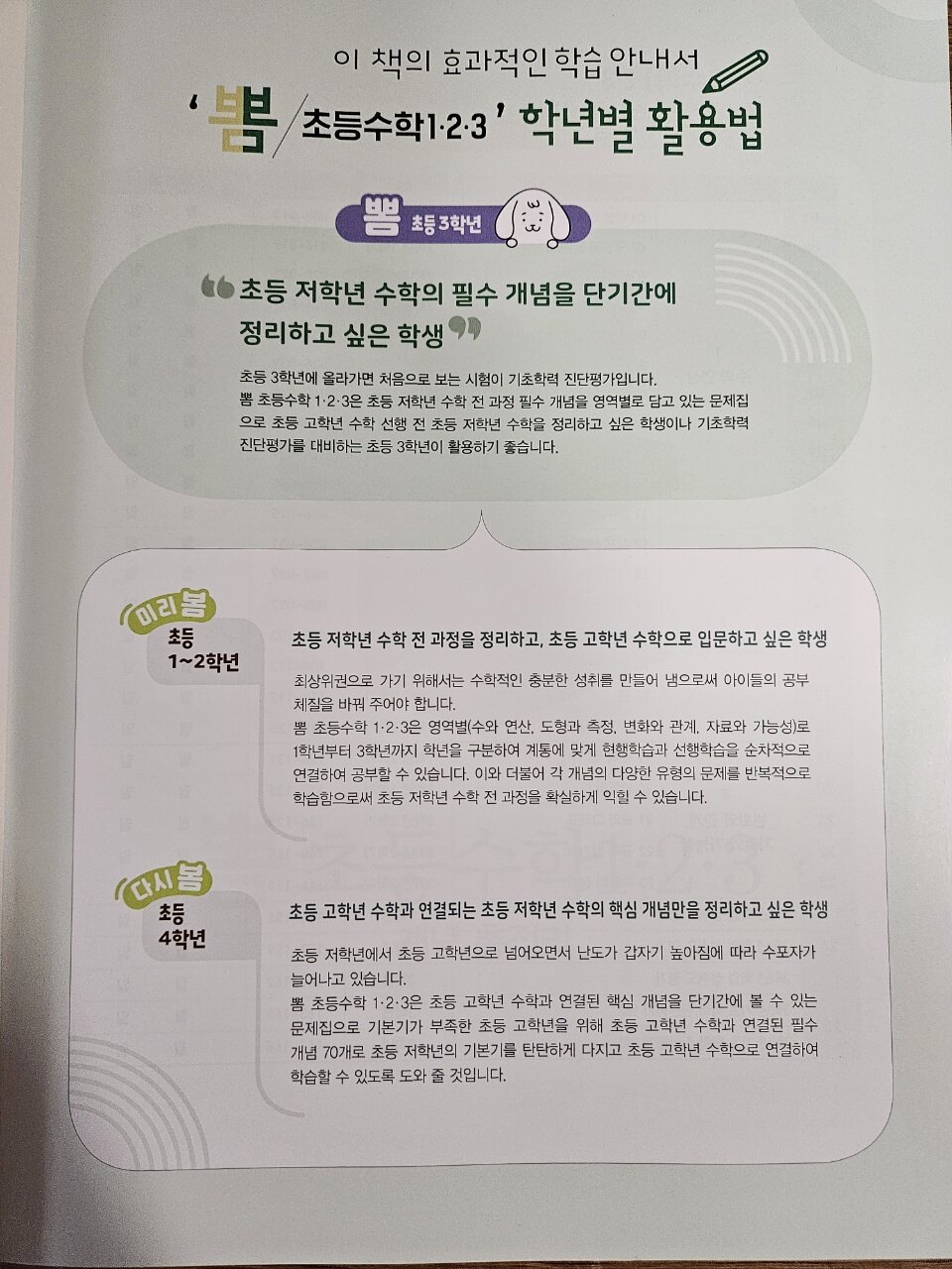 《뽐초등수학123》이 새로이 나왔어요. 뽐초등수학456으로 1호와 함께 학습단도 하고 잘풀고 있어서 넘넘 마음에 흠뻑 드는 교재중에 한권이에요. 1.2.3학년 저학년 친구들에게 좋은것 같아요. 당연히 123시리즈,456시리즈,예비중시리즈까지 함께 다루어준다면은 금상첨화지않을까요? 저학년 친구들 학년대비에도 넘 좋은것 같아요. 《구성과 특징》 ✅️초등 고학년 수학과 연결된 70개의 필수개념을 완벽이해할 수 있는 뽐초등수학123 ✅️case별 실전 개념응용문제로 반복적으로 실력을 키울수 있는 뽐초등수학123 -필수 개념을 적용해서 다양한 유형의 문제를 반복해서 스스로 실력을 키우자. ✅️학년별 총정리 테스트로 정리하고, 초등 고학년 개념을 미리 맛볼 수 있는 뽐초등수학123 ✅️기초학력진단평가로 초등3학년 첫 시험을 준비할 수있는 뽐초등수학123 단원별로 학년에 단계단계에 맞게 잘 나와져 있어요. I 수와연산 II도형과 측정 III 변화와 관계,자료와 가능성 으로 이루어져 있어요. 부족한 부분을 채워줄수 있어서 1학년부터 3학년까지 두루 살펴볼 수있어서 very good입니다. 단원별로 어려운 단원을 복습할수 있어서 좋았답니다. 미리 2학기 예습에도 좋았고요. 가장 중요한 개념정리를 해준후 필수개념문제를 확인한후 실전개념 응용문제로 다질수 있어서 좋았답니다. 총정리 TEST까지 확실히 정리 해서 부족한 부분 다질수 있어서 좋아요. 저희집 2호는 3학년수학을 총정리할 수 있어서 좋았답니다. 부족한 1.2학년수학까지 정리가 좋아요. 1호가 풀던 뽐초등수학456 4학년 예습도 시켜봐야겠어요..뽐뽐시리즈로 즐겁게 수학을 할 수있어서 좋아요. 학년마다 정리를 하고싶은 아이들에게 좋을것 같아요. 뽐시리즈로 아이들 초등수학을 잡아보아요. 추천합니다.