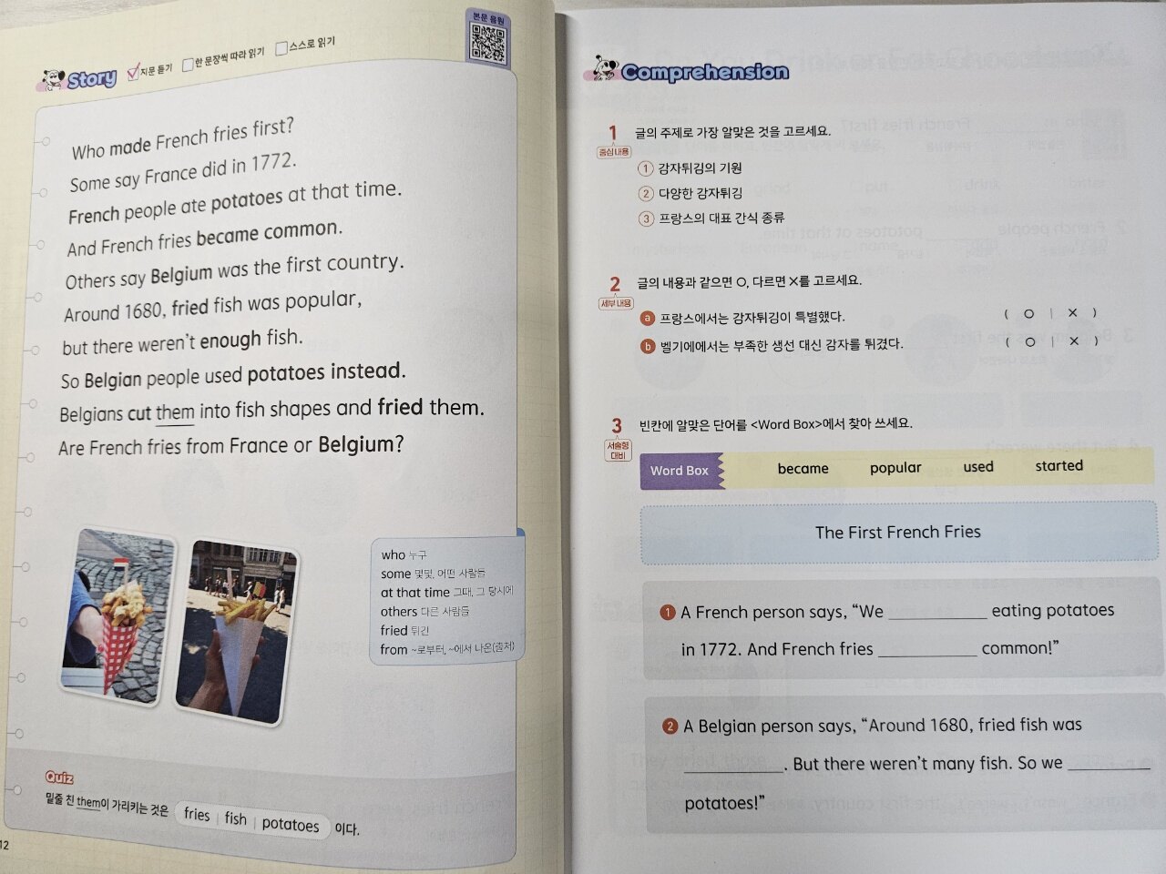 저희집 두남매가 바빠영어로 한단계한단계씩 공부하고 있어요. 이번에 소개해드릴 책은 <바빠 초등 영어리딩 2 : Word 60>이라는 책이에요. 리딩책으로 쉽게 영어단어와 문법을 조금씩 다뤄주는 좋은 책이지요. 매일 2장씩 16일 완성하는 리딩을 쉽게 만드는 필수 영단어와 영문법이 포함된 책!! 초등 필수 영단어와 초등에 필요한 문법을 하나하나 잡아주는 교재인것 같아요. 아직 저희집 아이가 읽기네는 초등영어리딩2가 어렵지만은 도전해볼만 하다고 생각이 들어요. 초등필수 영단어와 학교 문법으로 시작하니 혼자서도 막힘없이 술술 읽을수 있는 좋은 교재지요. 리딩이 쉬워지는 첫번째 징검다리, 단어!! 배로 배우고 바로 소화해요. 리딩이 쉬워지는 두번째, 문법!! 학교 문법 수준이면 문장이 읽혀요. 리딩 스킬이 저절로 길러지는 끊어읽기 자석처럼 마음을 끌어당기는 흥미진진한 비문학 지문들 망각이 일어나기 전에 진짜 내 실력으로 만들어 주는 똑똑한 복습설계 QR코드가 있어서 단어 음원을 직접 들어가면서 따라 읽을 수도 있어요. 끊어읽기를 하면서 주어구분하고, 동사와 목적어 구분하기, 수식어 구분하는 방법을 배워요. 중간중간 영문법이 나오니 익힐수 있어서 좋아요. 바빠시리즈에는 많은 영어교재들이 있지요?? 이제 고학년인 1호에게 필요한 바빠시리즈들이에요. 부지런히 영어공부를 해야 할 때 인것 같아요. 리딩을 어려워하는 울 집 아이가 있다면은 적극 추천드리고 싶어요. 영어단어와 문장구조를 쉽게 이해할 수 있어서 하루 2장으로 금방 완성할수 있어서 좋은것 같아요.