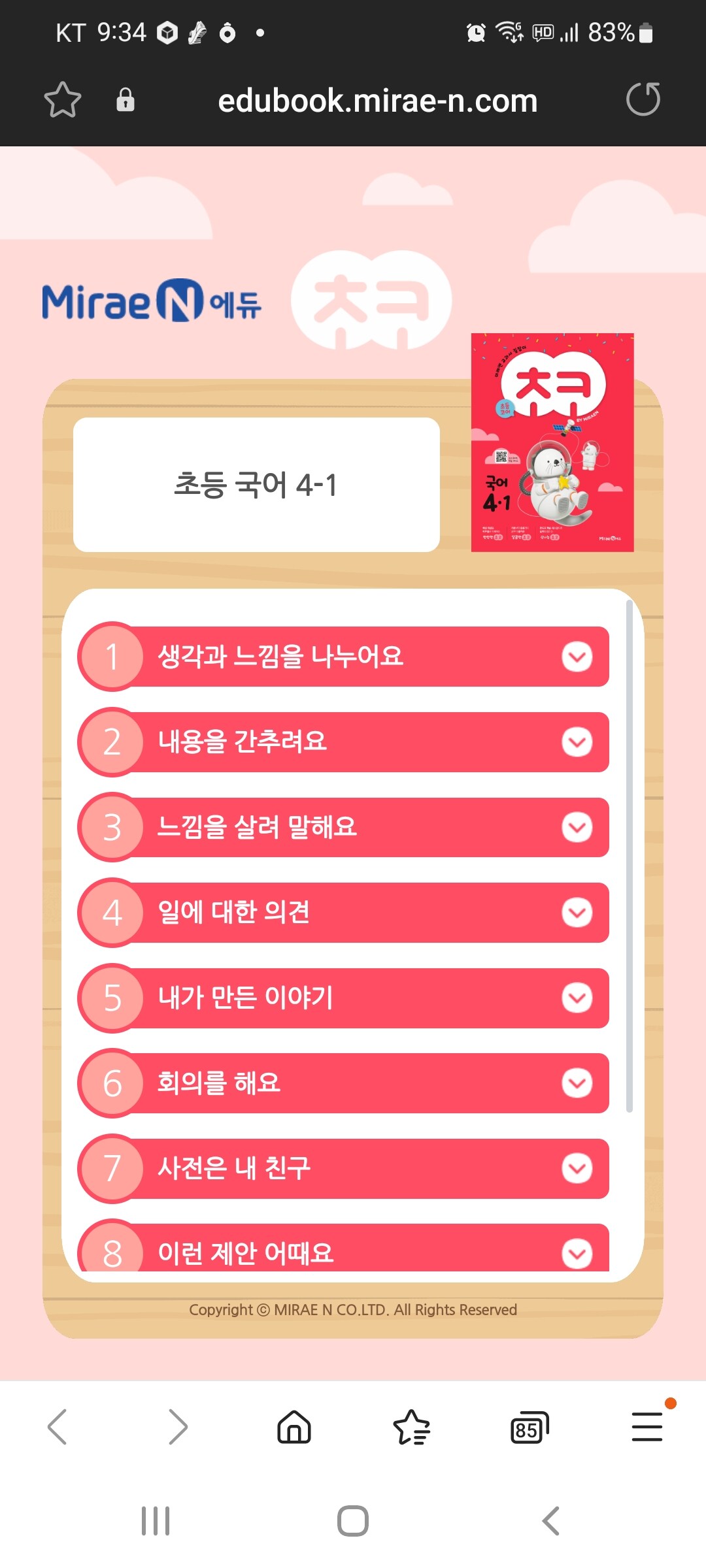 미래엔 교과서 길잡이 초코와 함께 2023년 새학기를 시작했어요. 작년에 초코를 알게되어서 쭈욱 함께하는 초코수학 초코시리즈.. 올해 과학도 새로나왔는데 수학은 말안해도 엄지척 손에 꼽히지요.. 자기주도학습하기에도 좋고 영상까지 있어서 스스로 공부하기에도 엄청 좋아요. 스스로 공부체크까지 할수있어서 엄지척이에요. 초코온라인학습서비스..qr코드만 스캔하면은 되지요 알찬풀이 정답지까지 해설이 잘되어져 있어서 더더 좋은교과서같아요. 엄마에게 없어서는 안되는 존재이지요 새학기 새학년 시작하였으니 다같이 초코해요.. 초코추천합니다.
