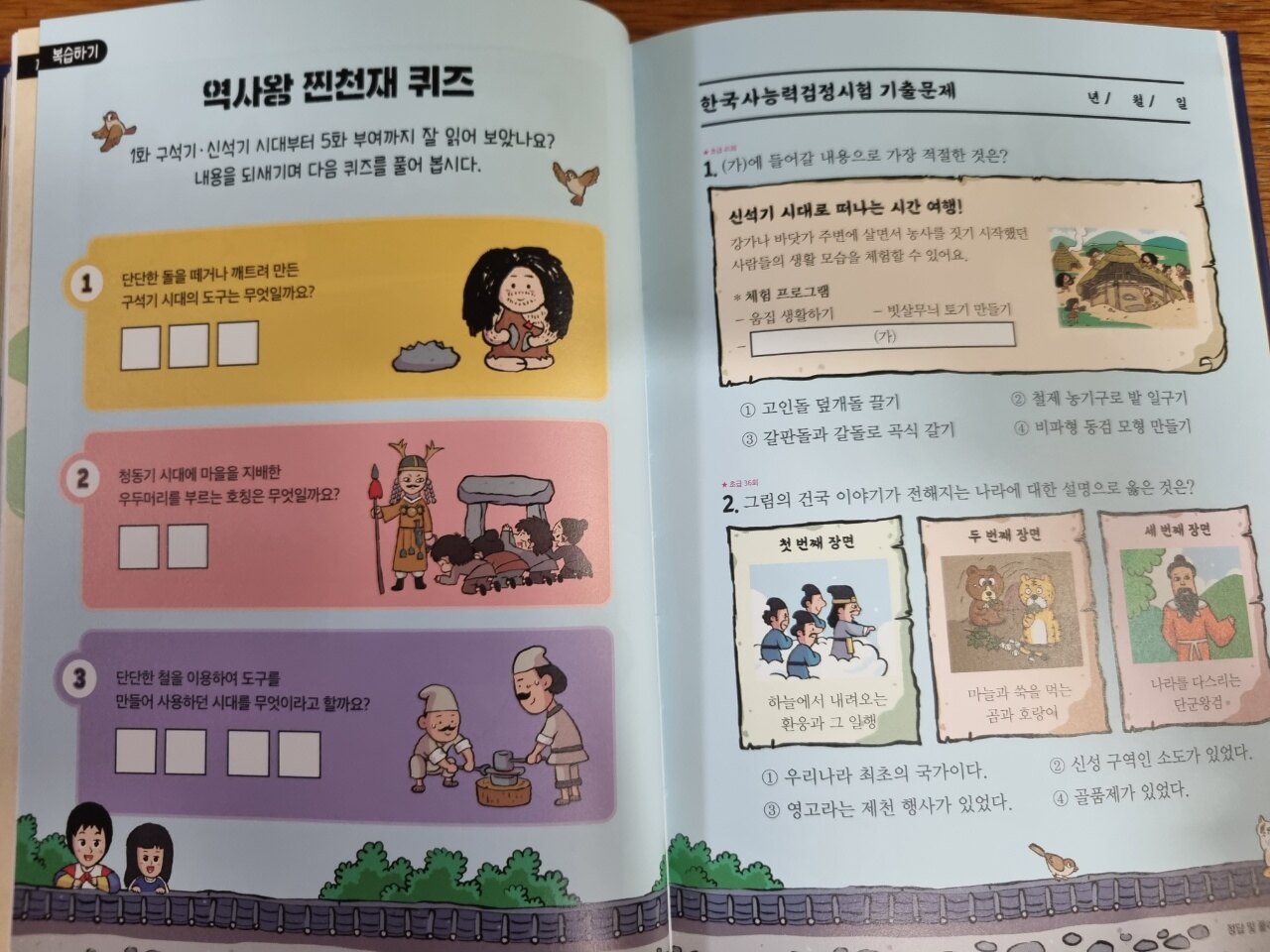 올해 초등 4학년이 되는 아들.. 3.4학년부터 사회가 시작되는데 어려워하는 아들.. 아직 한국사는 시작되지 않았지만은 걱정이 되었어요. 근데 역사만화1권을 만나서 재미있게 접할수 있었어요. 책을 잘 안읽는 아이인데 학습만화로 되어져 있어서 쉽게 다가갈수있어서 빠져드는 아이의 모습을 볼수있었어요 역사는 어렵고 재미도 없다는 편견아닌 편견을 가지고 있지요. 저또한 그런 편견이 있는 1인이였지요. 홍진경 김라엘의 공부왕 찐천재 역사만화를 통해 재미있게 쉽게 접할수 있어서 아이가 도움이 되는지 쫑알쫑알되었다지요. 유투브까지있어서 영상까지 보니 엄지척이에요. 역사는 어렵고 재미있지않다는 편견을 벗어낼수 있는 좋은 경험했어요. 역사만화2,3,4권 다 재미있게 읽고싶어요.