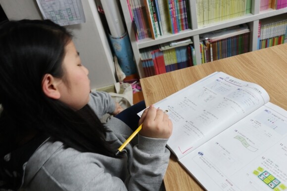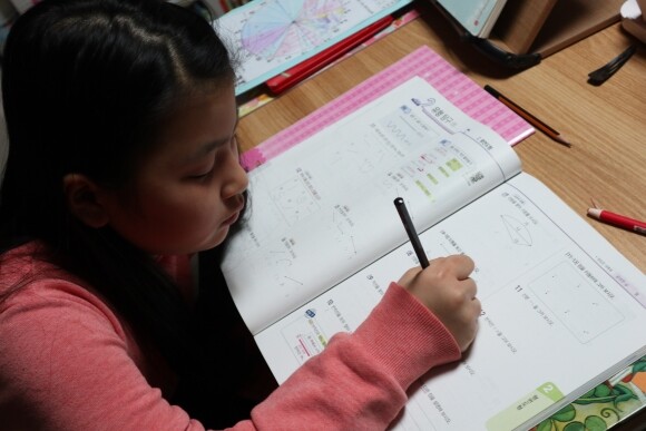 오늘은 유형서를 풀고있는 딸 가까이에서