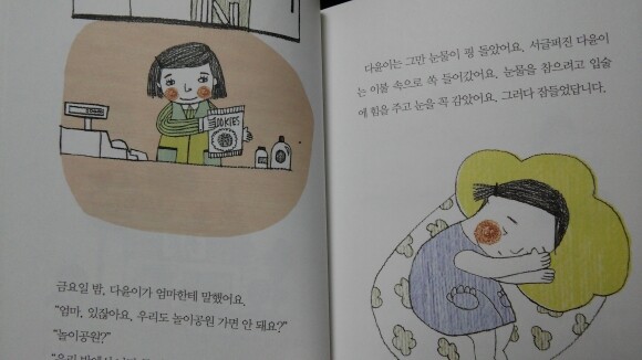 아빠와 교대로 편의점 일을 하시는 엄마....그래서 다윤이와 놀 시간이 없어요