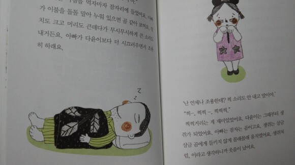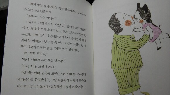 " 아빠 피곤하니까 조용히해. 꺠우지마" 그런 아빠가 곰처럼 보이는 다윤이