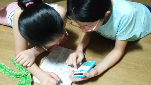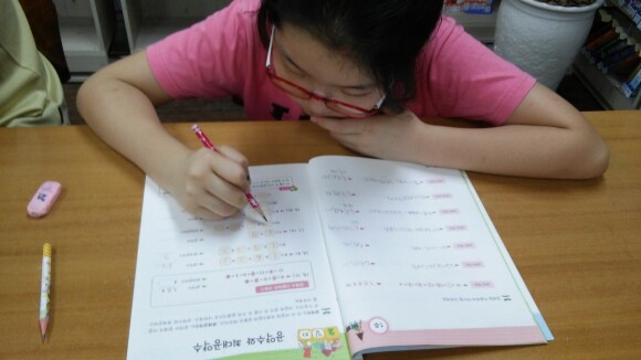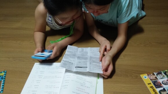엄마는 도서관 봉사활동을 하니 아빠에게 물어물어가며 혼자서 풀다