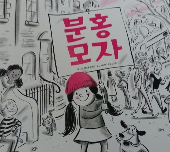앞 표지 제목과 주인공의 모자.... 분홍....분홍 뒷표지 분홍모자를 쓴 소녀