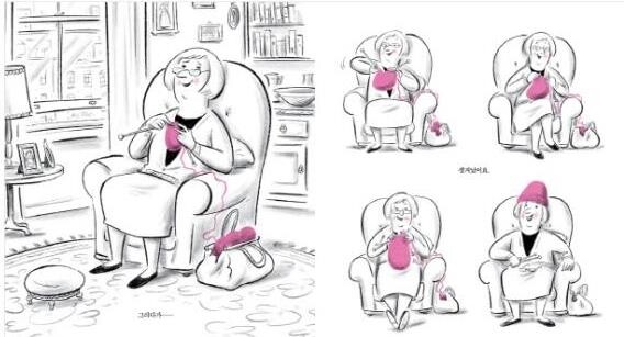 세상에 없다 중년의 부인 손에서 생겨났어요 포근한 모자이고 분홍모자였죠