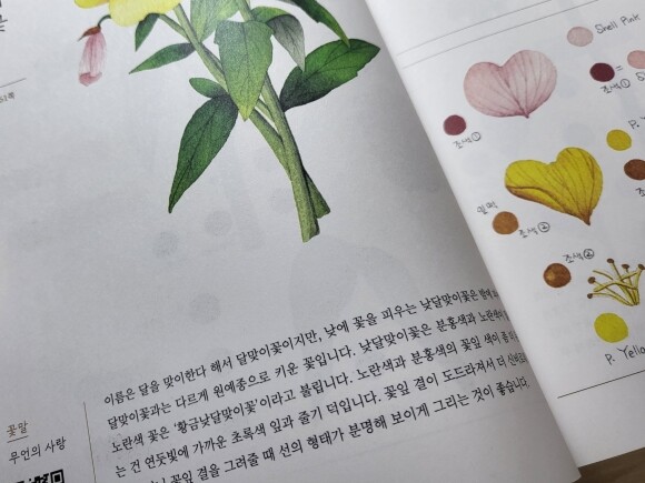 내가 그리는 꽃의 이름과 꽃말이 안내되어 있고 어떠한 부분에 신경써서 채울지 짚어준다.