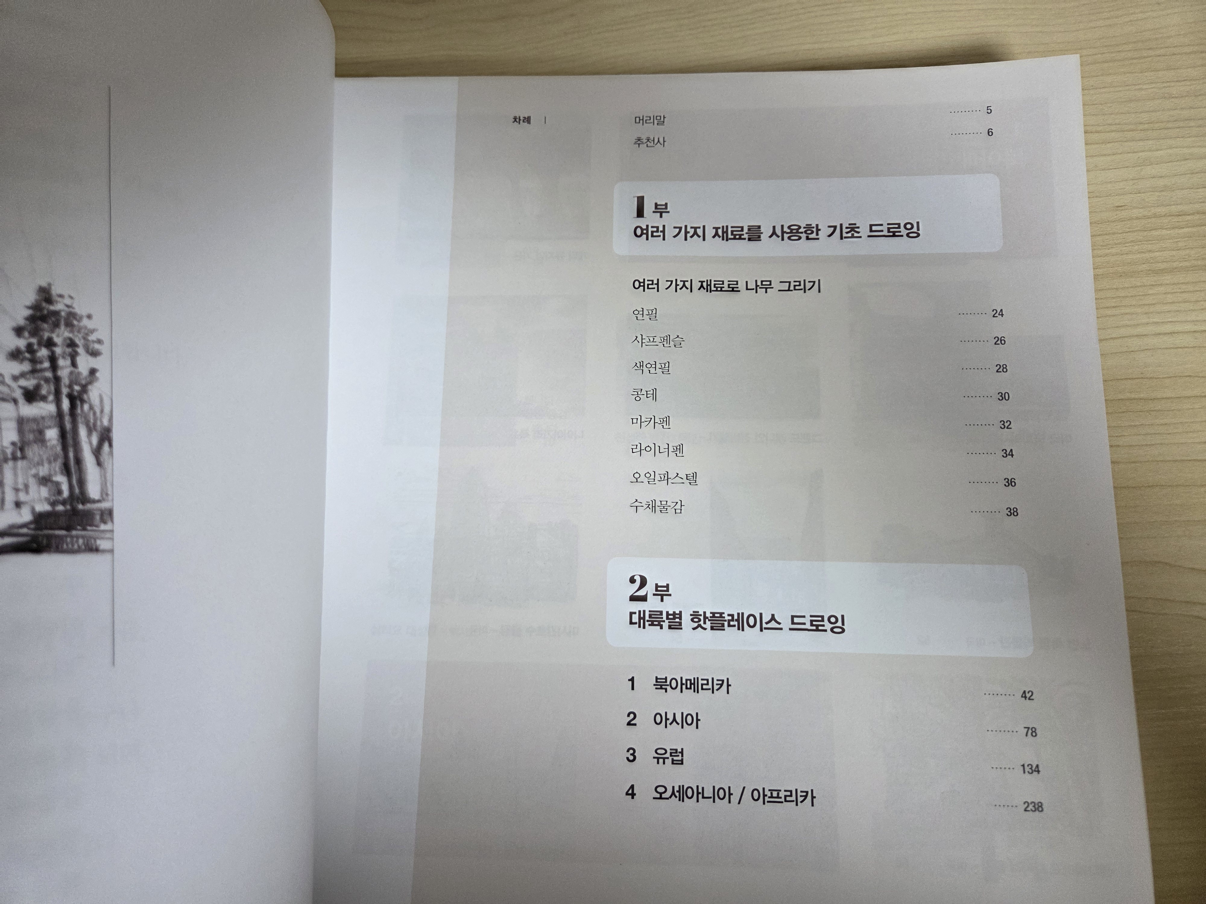 1부에는 재료에 대한 설명과 직접 그려볼 수 있는 페이지가 바로 옆에 자리하고 있다.