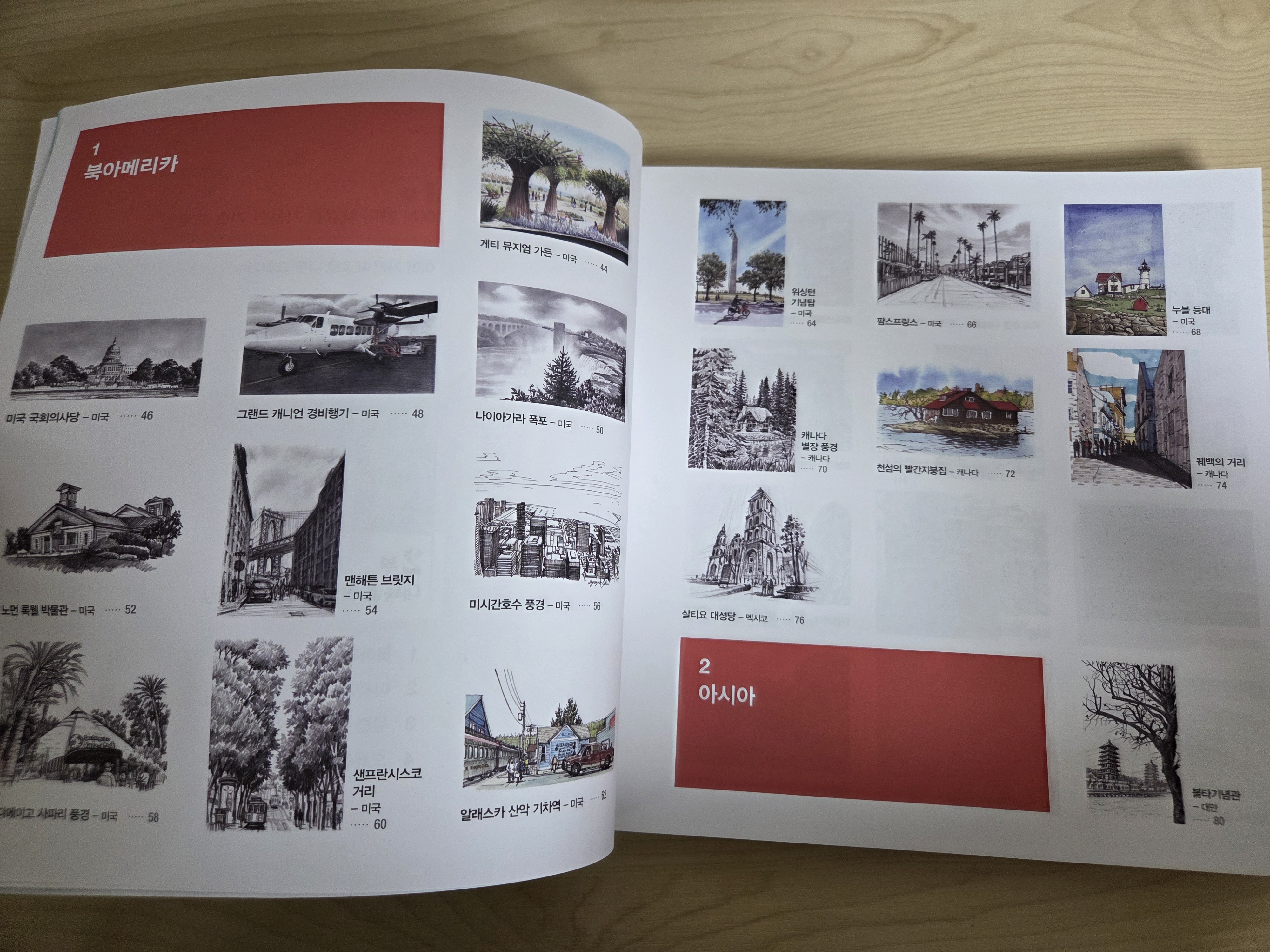 차례 페이지를 보면 지역별로 유명한 장소를 그린 작품이 나누어져 있고 깔끔한 배열로 한눈에 찾아볼 수 있도록 안내하고 있다.