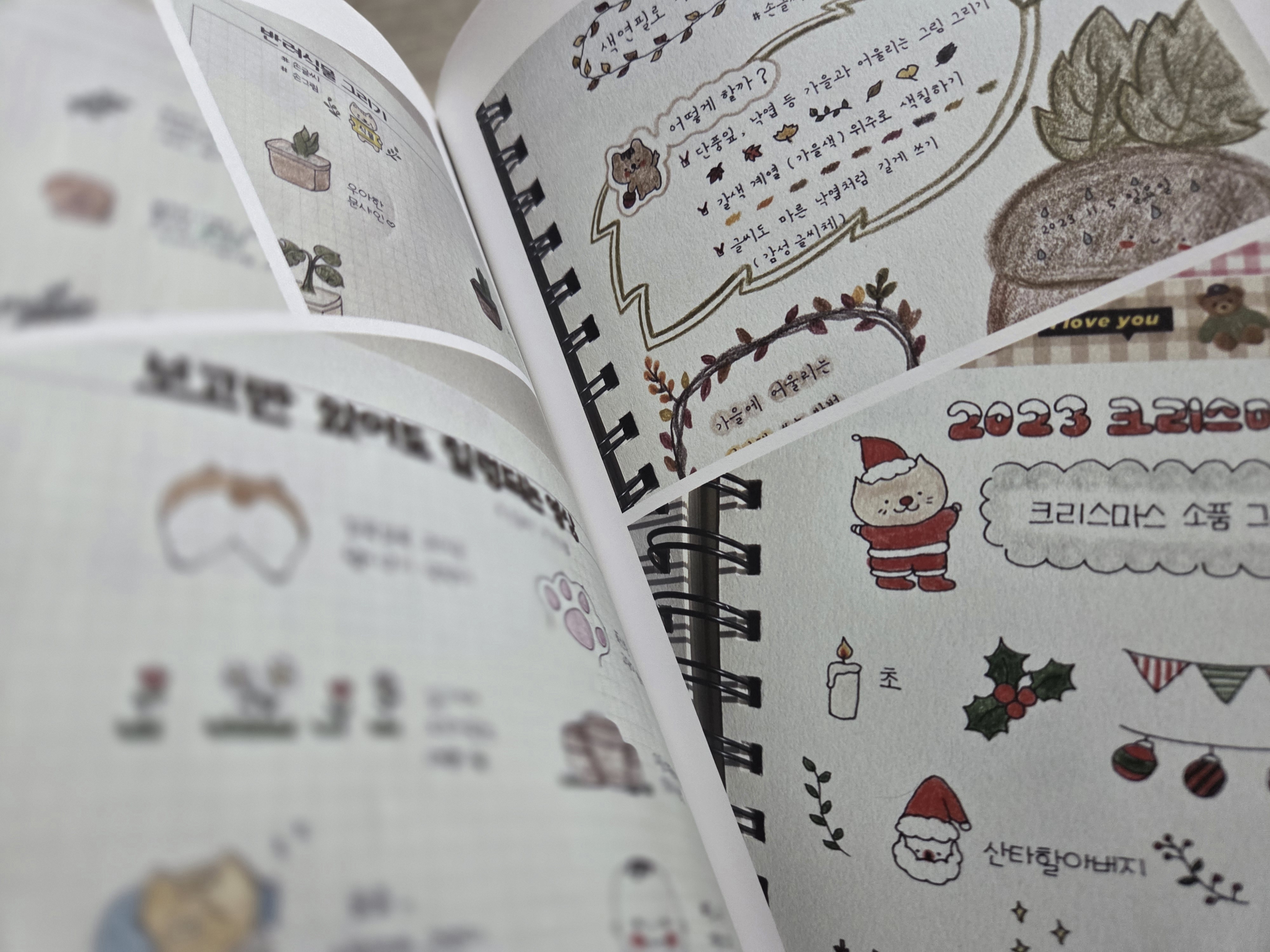 부록으로는 실생활에 사용한 모습을 볼 수 있다. 다이어리나 일기, 필사 등등의 다양한 부분에서 활용할 수 있음을 알려준다.