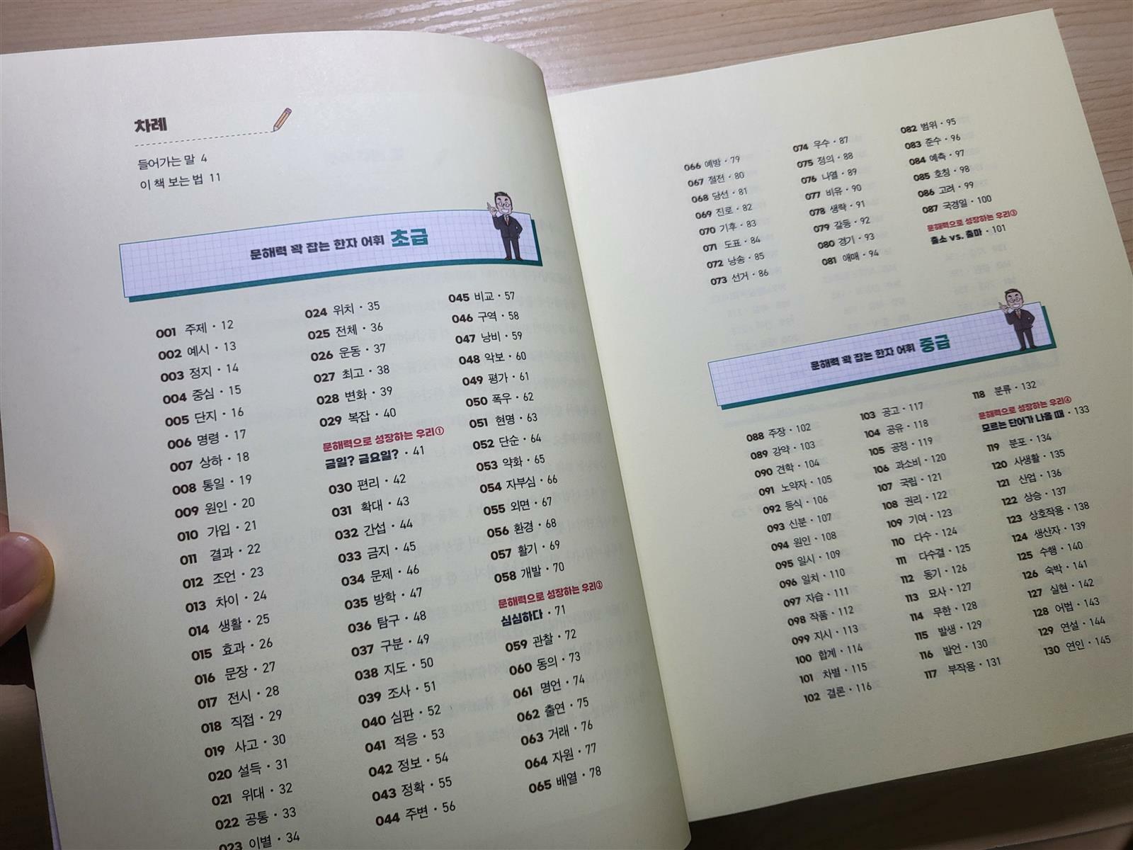 '들어가는 말'에 이어 초급 중급 고급의 세가지로 분류되어 365개의 한자 어휘가 등장한다.