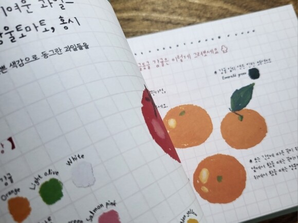 그림에 사용한 색상과 가벼운 설명을 슥 읽어보고 뒷장에 이어지는 자세한 설명으로 작품을 그려볼 수 있다.