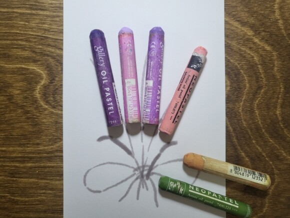 현재 보유하고 있는 있는 색이 한정적이라 비슷한 색상을 문교오일파스텔에서 찾아 사용했다.