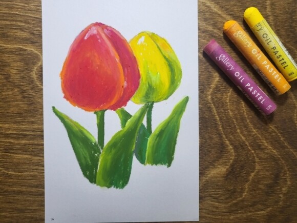종이가 두껍지는 않지만 오일파스텔의 색과 질감이 잘 표현되며