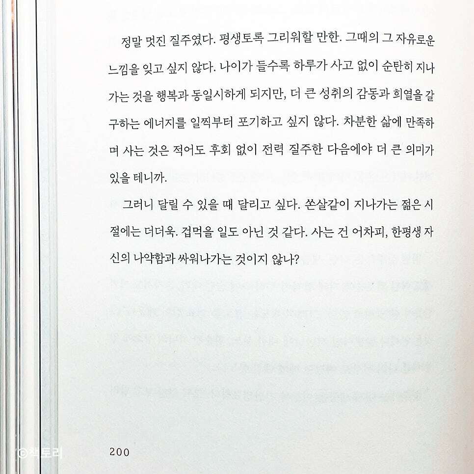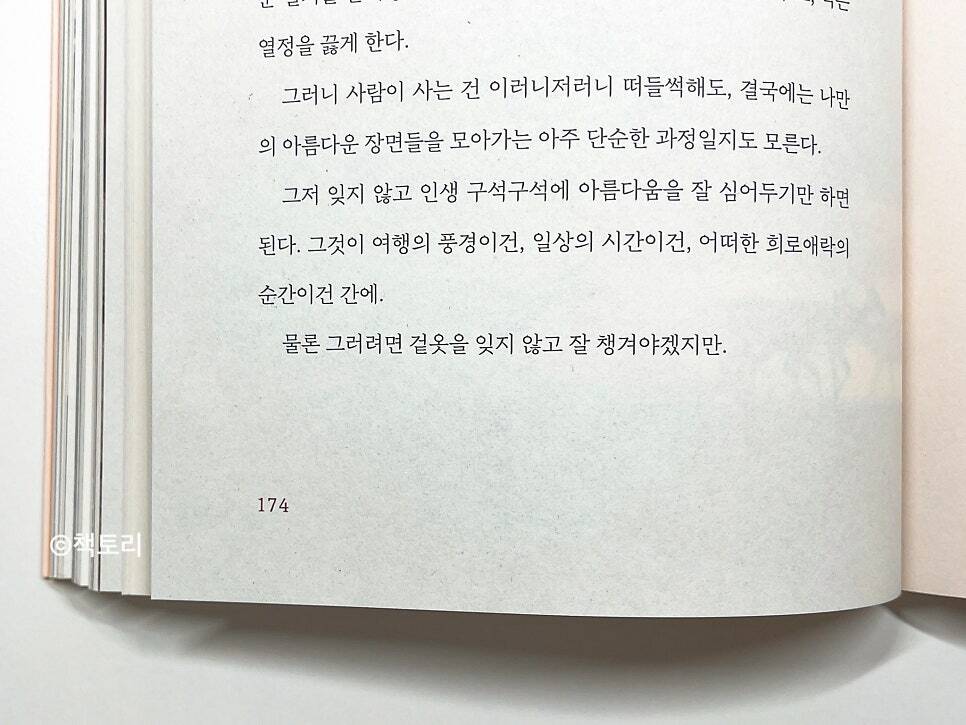 이 책은 단순한 여행의 기록이 아니었어요. 순간순간 용기를 내어 발걸음을 내딛은 용기의 흔적이자 그 시간을 소중히 여긴 기록이었어요. 덕분에 저 역시 제 인생에서 정말 소중한 게 무엇인지 그리고 나만의 용기는 무엇인지 돌아보게 되었어요.
