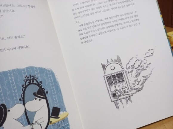 그리고..다음날 무민과 친구들은 구름을 타고 놀고 싶어 검정모자를 들여다 보았지만
