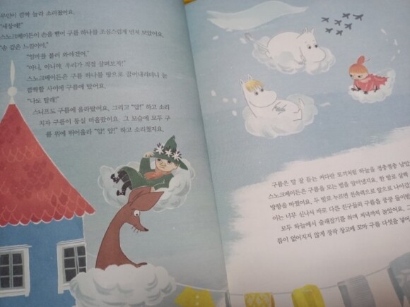 그 구름을 타고 무민과 친구들은 엄청 재밌고 신나게 놀았습니다.