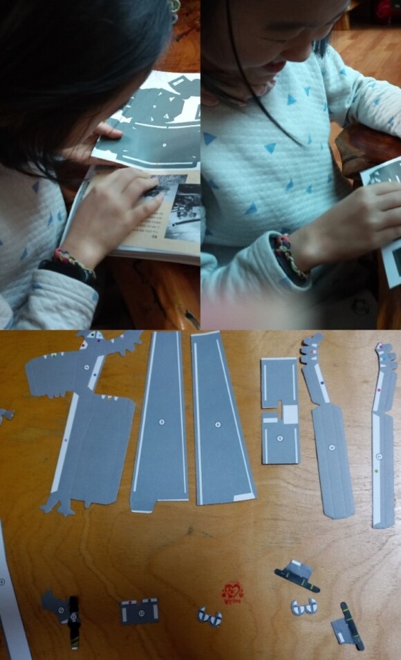 책 아래는 종이 모델 조립 도면 책으로 손으로 쉽게 뜯을 수 있는 조립도면이 인쇄되어 있습니다