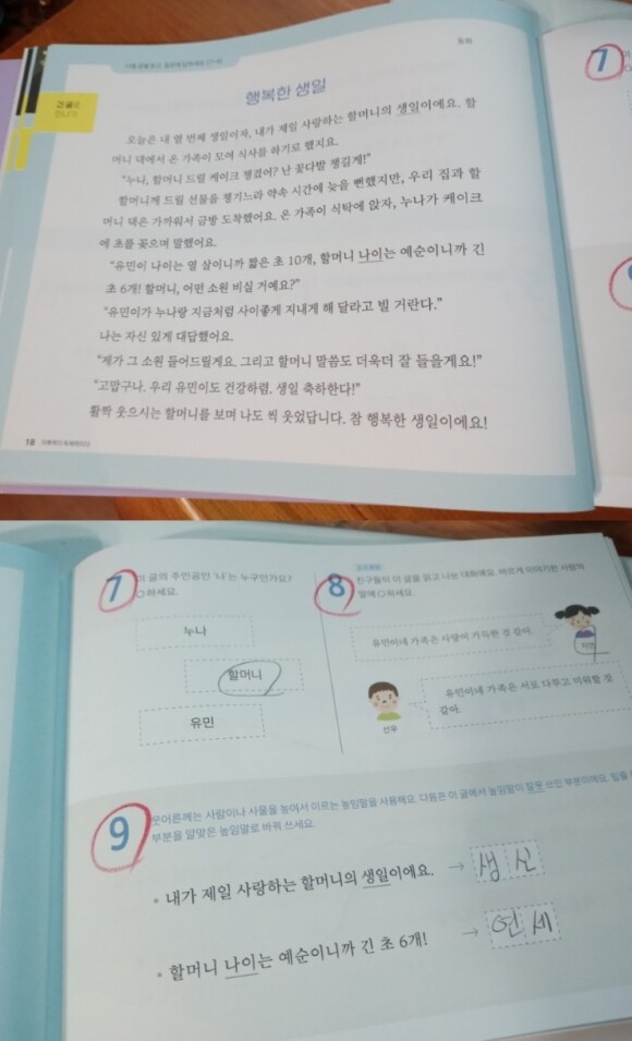 낱말과 짧은글을 통해 학습한 독해지문을 읽고