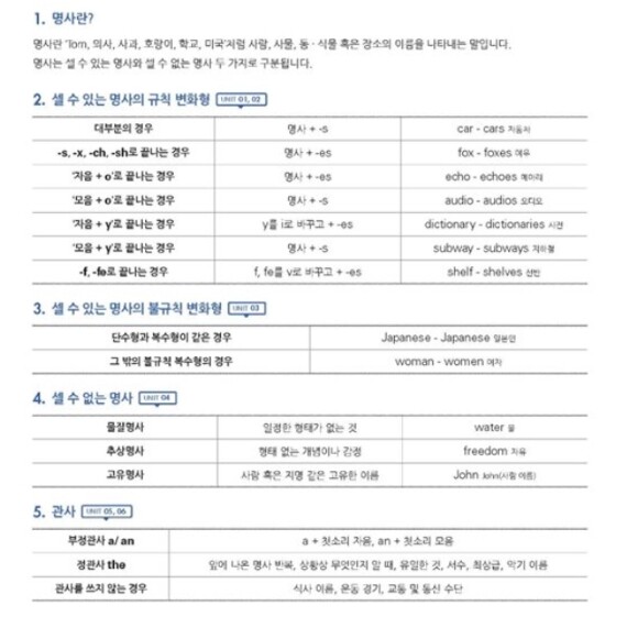 명사와관사로 여섯 유닛으로 구성이 되어 있습니다.
