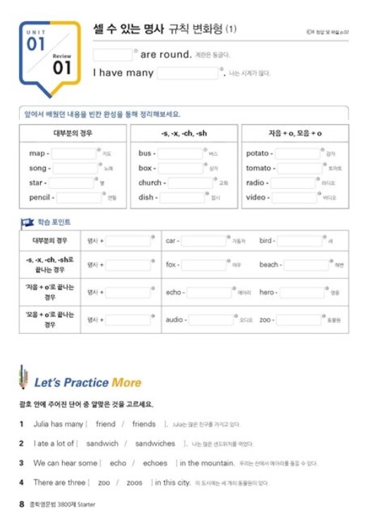 첫번째 유닛 - 셀수있는명사(규칙변화형)