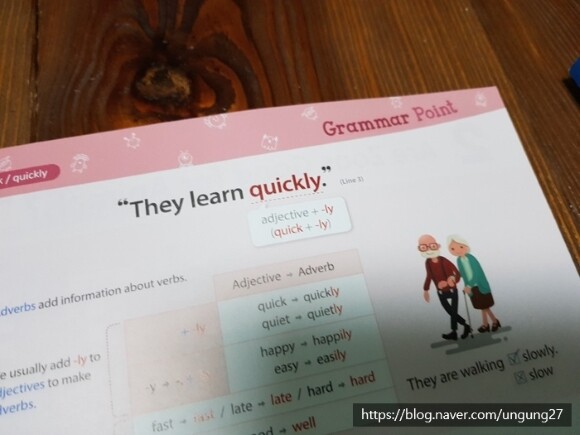 듣기 뿐만 아니라 단어와 문법을 익히게 해주는 부분도